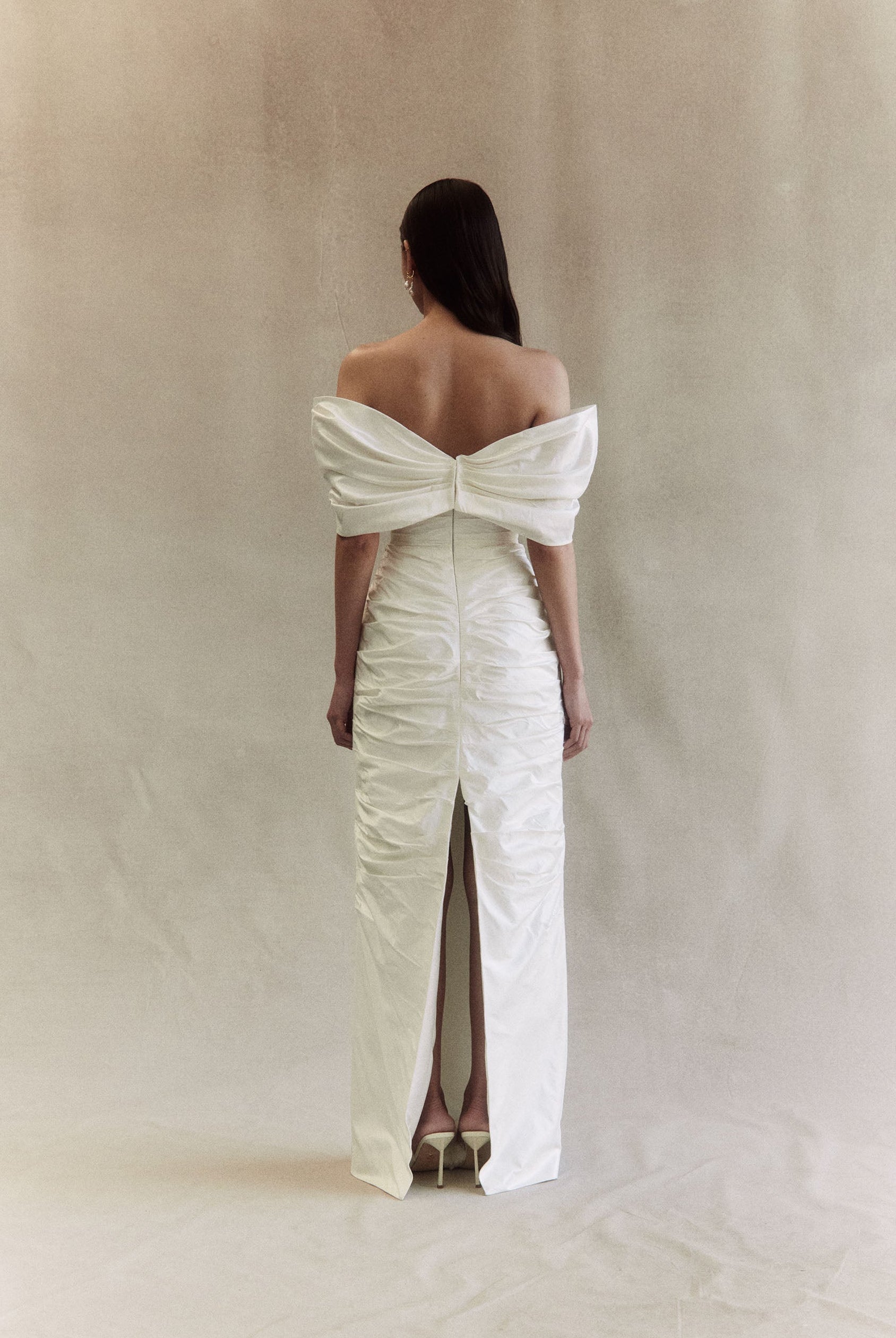 Allure see’s a strong focus on hand draped fabrics to create movement through texture, structure to create feminine and defined silhouettes and billowing sleeves to add a certain understated luxury to the pieces.