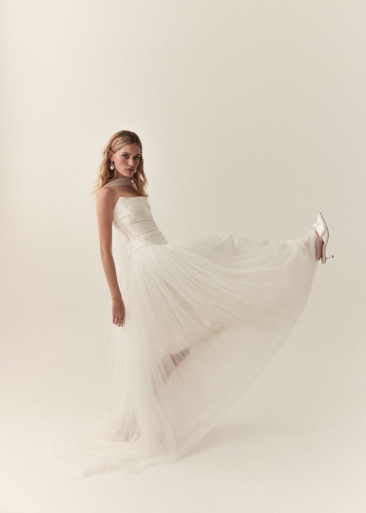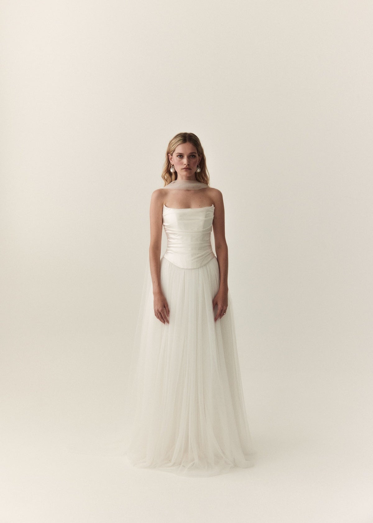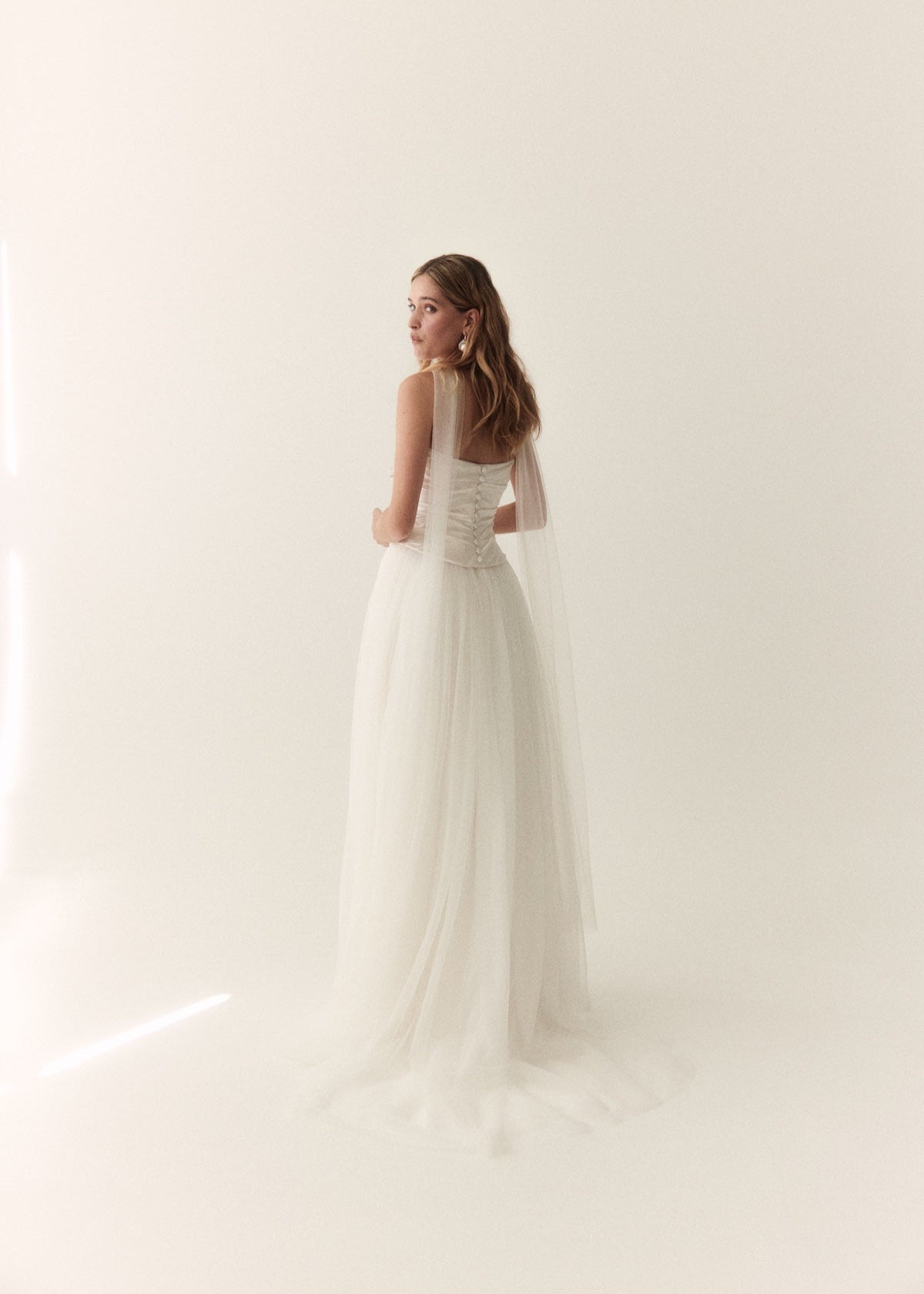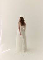 An ethereal, romantic, full skirt, with four layers of soft tulle and double lined with a silk satin. Finished with a satin waistband and invisible zip in the lining, that is hidden by the gathers in the tulle. She has a small 20cm train, however can be ordered without a train. Marianne pairs perfectly with the Mabel corset or Penelope corset.