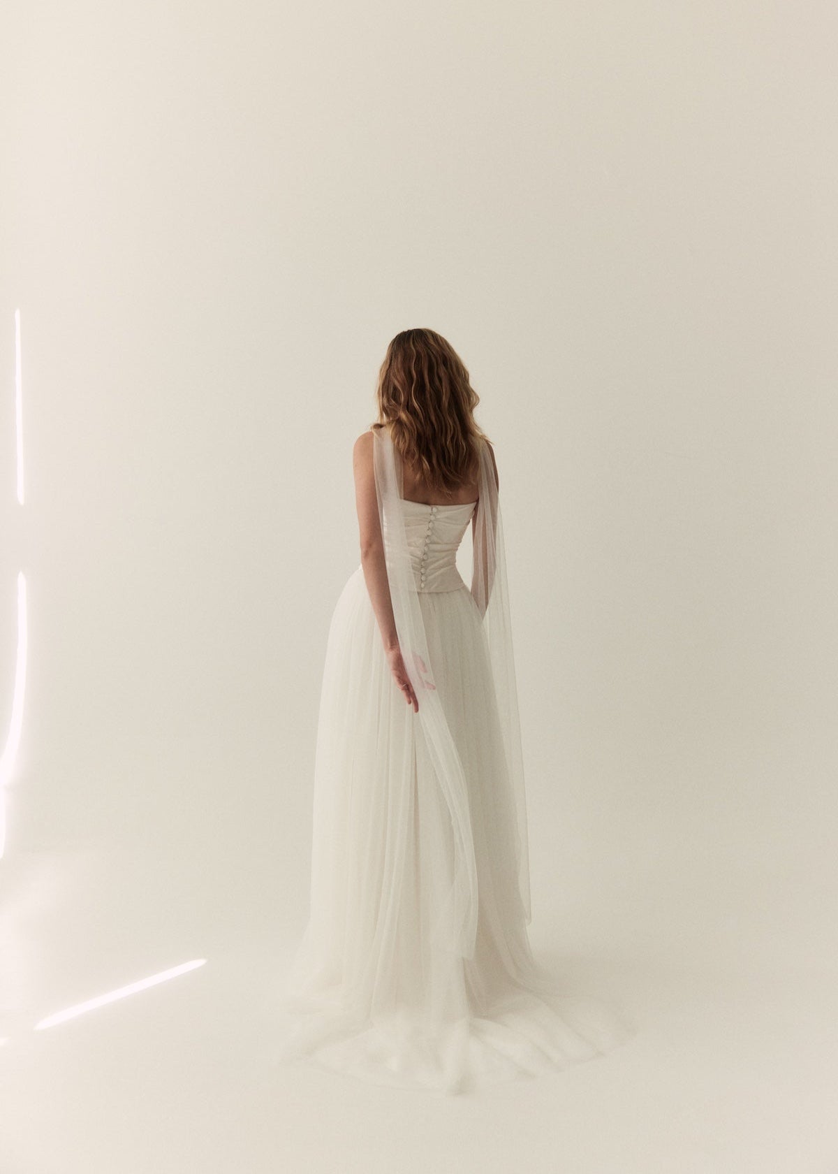 • Invisible zip opening on the centre back in the lining, that is hidden by the gathers in the tulle