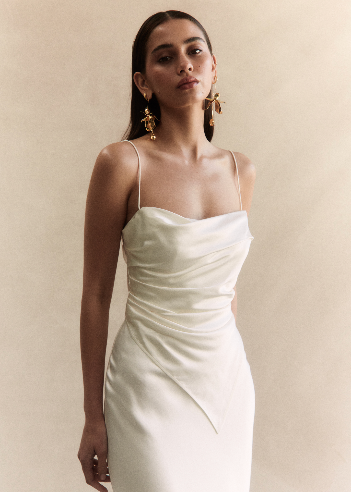 Crafted from our signature Italian Viscose with a luminous satin finish, she frames the figure with effortless perfection. Jolie features fluid drape over a softly boned bodice, slightly scooped neckline, delicately thin straps and a sensual low back.