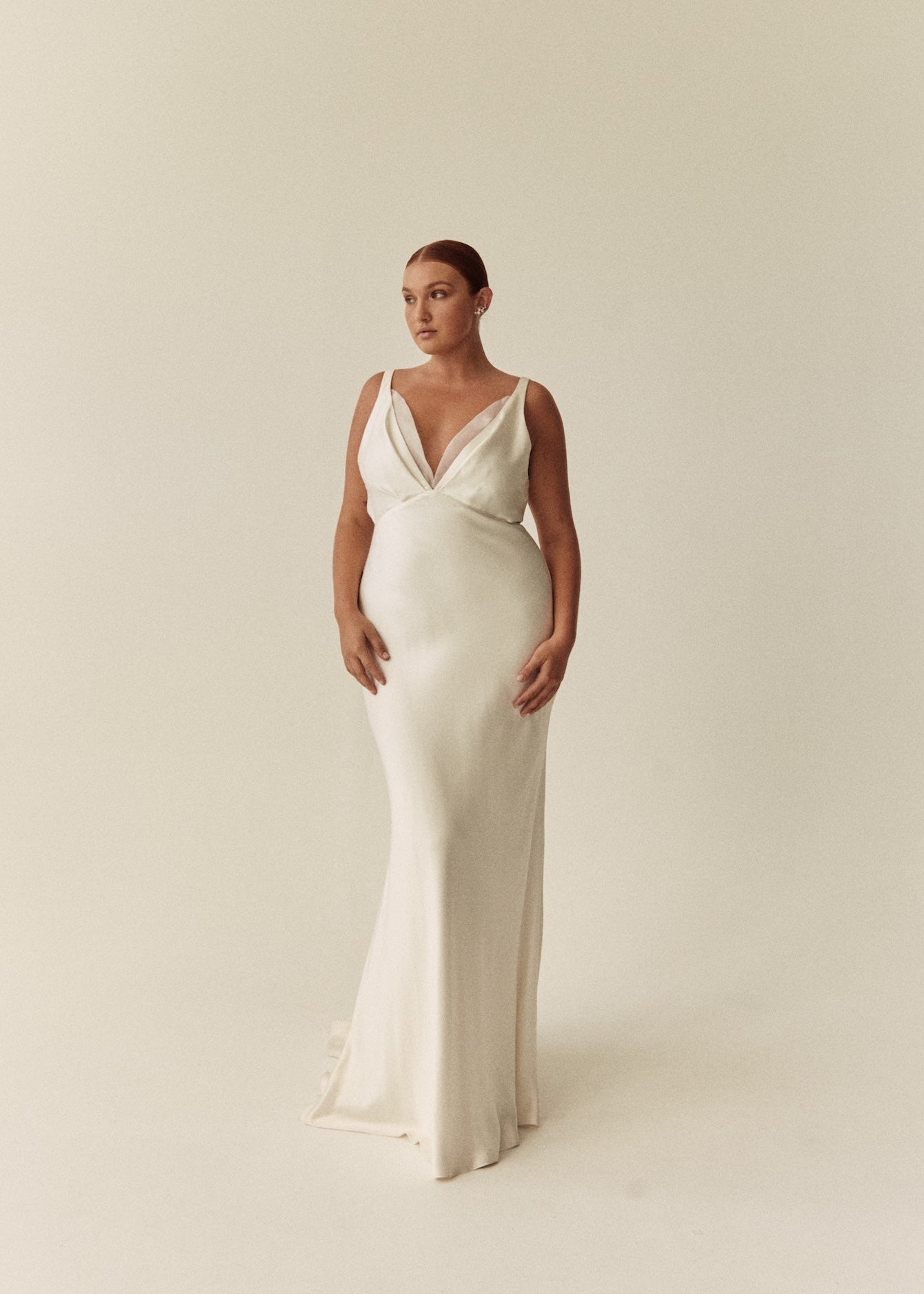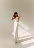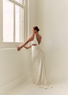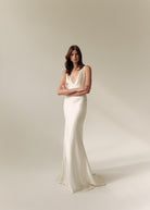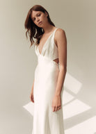 Rebecca embodies contemporary romance, and is ideal for brides looking for a unique gown that is elegantly understated. The V-shape empire seam on the front of the skirt and bodice further emphasises a beautiful, feminine silhouette, and compliments the V shaping on the front and back of the gown.